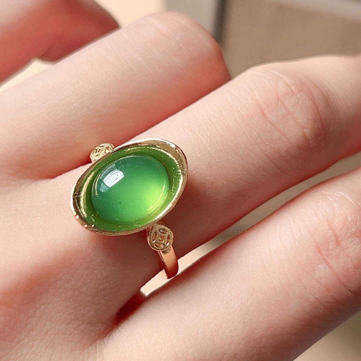 - ◇緑瑪瑙◇指輪◇リング◇フリーサイズ◇ キャッツアイ効果◇金運アップ◇天然石◇パワーストーン◇巾着袋付き◇プレゼントにも 040R9813