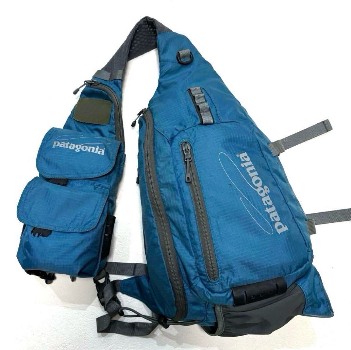 - 廃番 人気 良品 パタゴニア ベストフロントスリング 青 ブルー フライフィッシング 渓流 釣りアウトドア キャンプ ワンショルダー