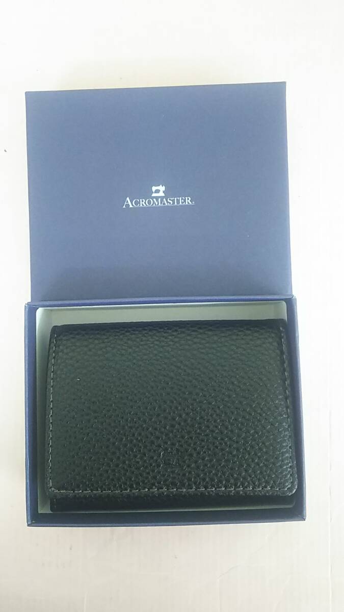 - C7296-185♪【60】ACROMASTER 本革三つ折り財布 (ブラック)