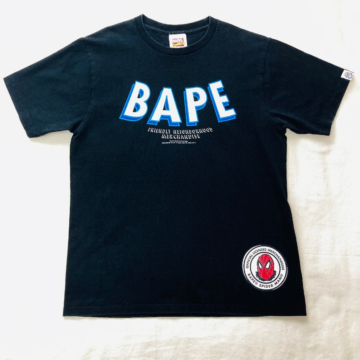 > MARVEL COMICS/BAPE SPIDER-MAN スパイダーマン ロゴ プリント Tシャツ ブラック/黒 M