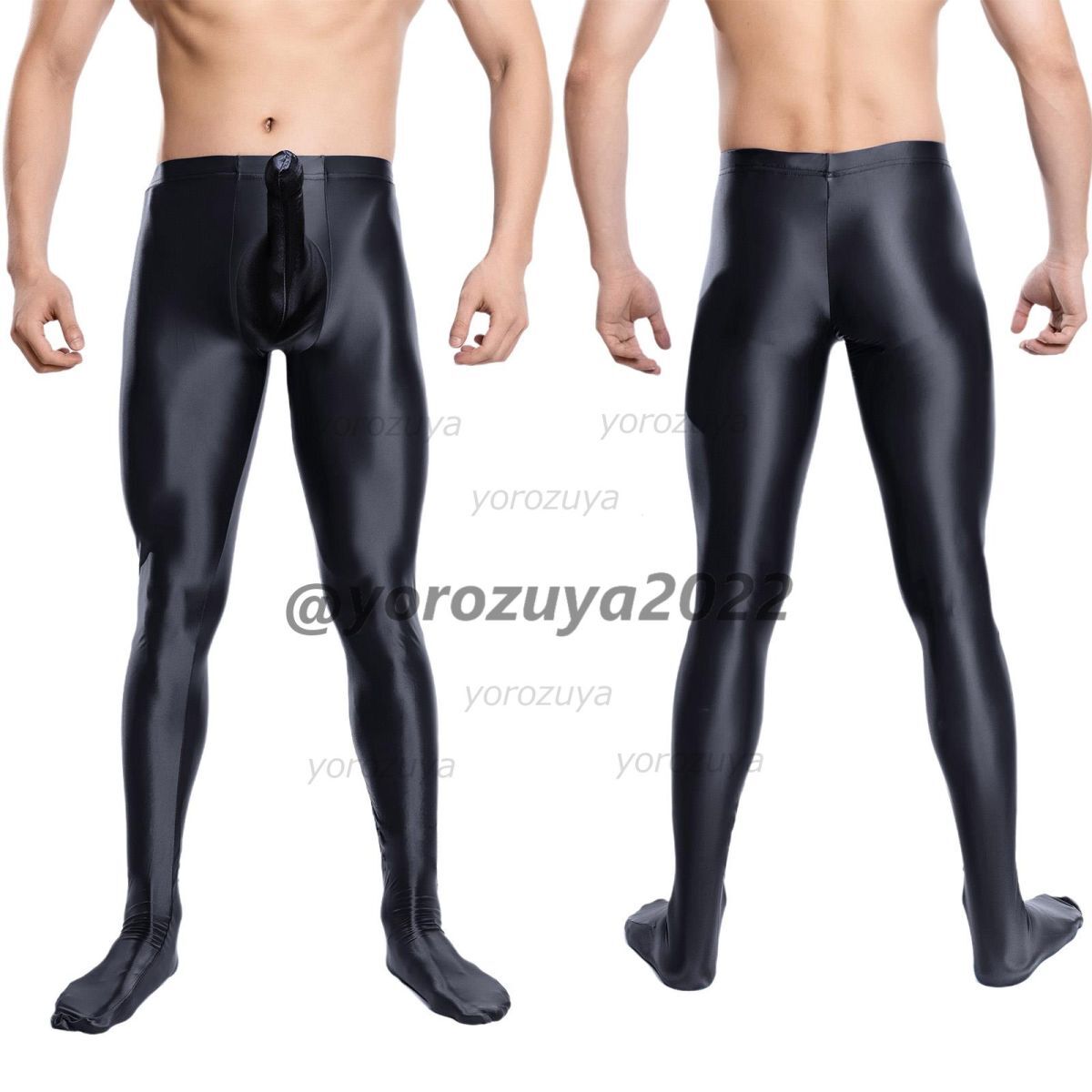 > 181-308-27 竿付き 光沢 艶々 10分丈 Toeタイプ レギンス【ブラック,XLサイズ】男性 メンズ 勃起パンツ ランジェリー ブリーフ ショーツ.1
