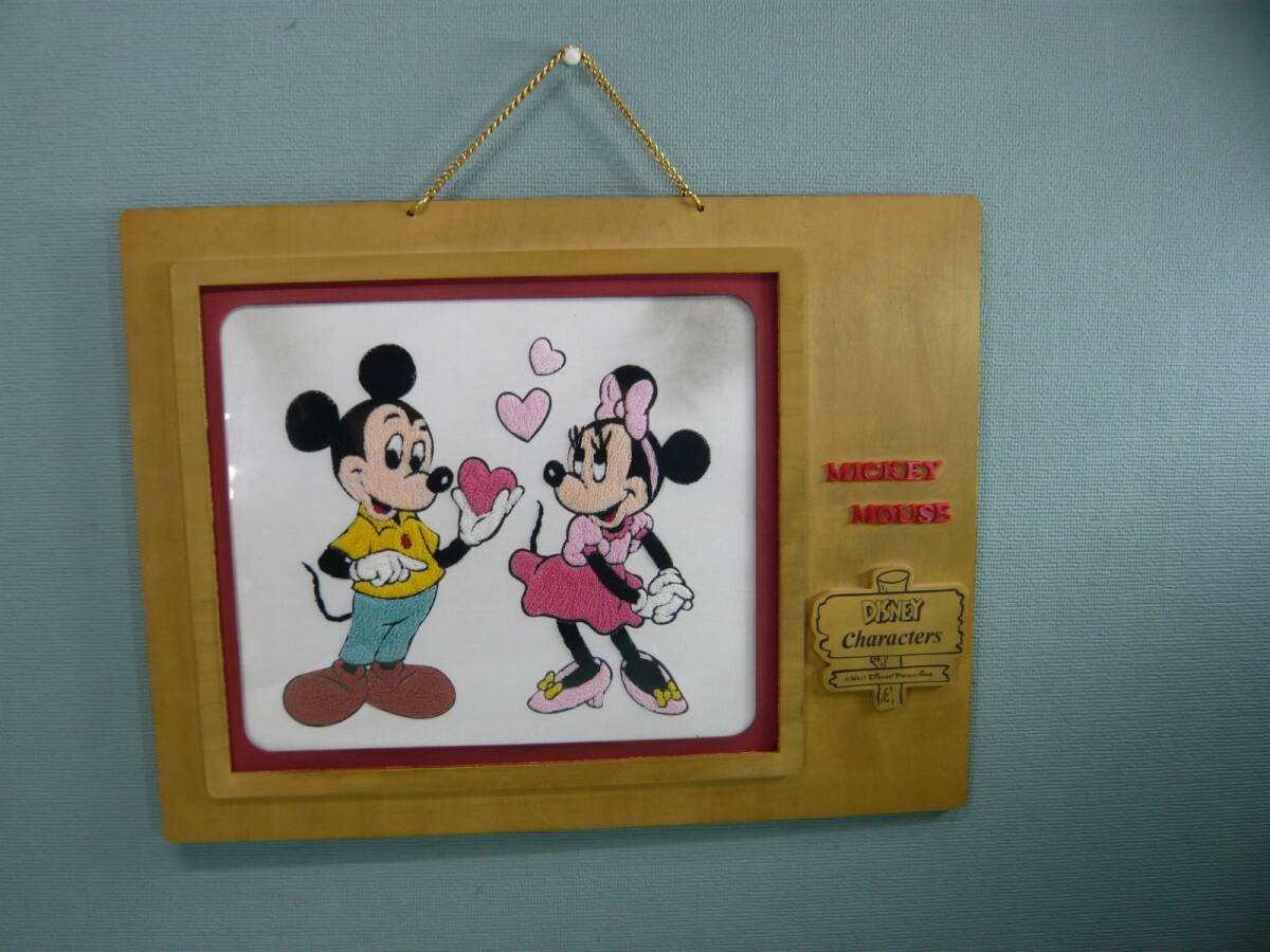 - ディズニー ミッキーマウス ミニーマウス 刺?作品 木製ボード 壁掛けタペストリー 中古 当時物 昭和レトロアンティーク
