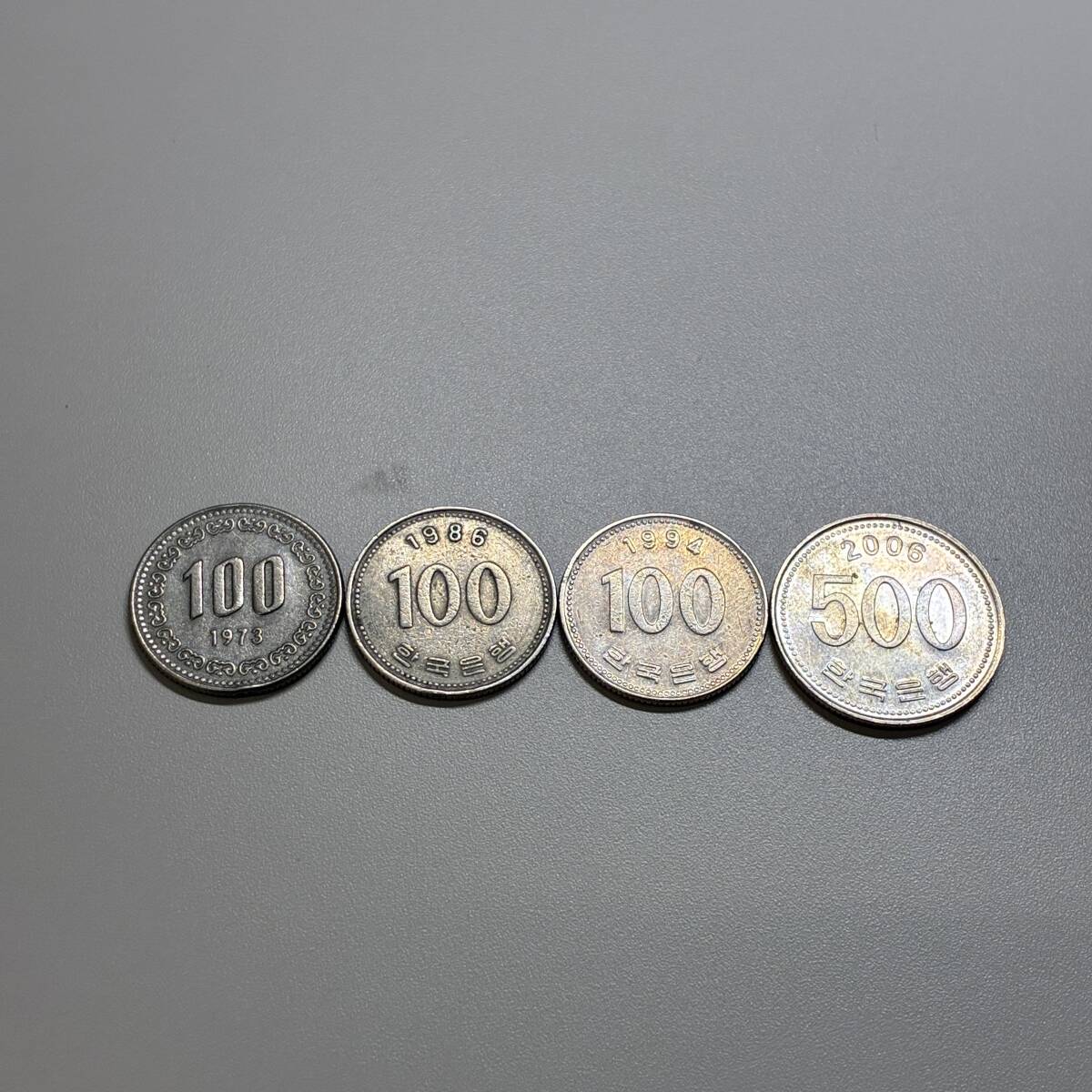 > ★韓国 100ウォン 500ウォン 硬貨 コイン4枚セット おまとめ 経年保管品 1973 1986 1994 2006