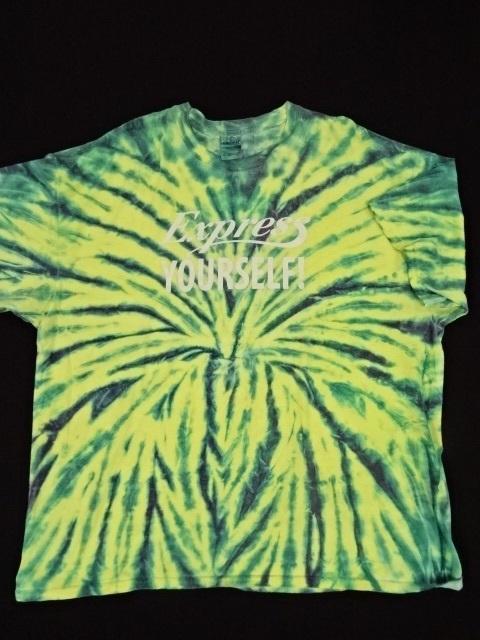 > GILDAN ギルダンTシャツ カットソー 半袖 BIGTShirt ビックTシャツ メンズトップス 緑×黄色 春夏 派手T ガラT 古着 USED