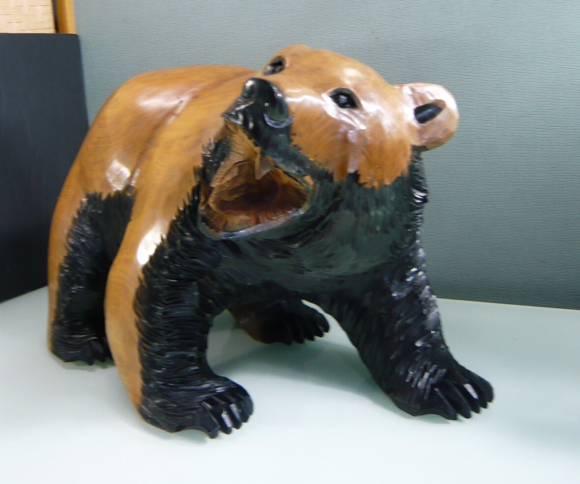 - 一刀彫 ヒグマ 木彫り 在銘無し 羆 くま 大きくて重い 12kg 置物 オブジェ 中古 昭和レトロアンティーク