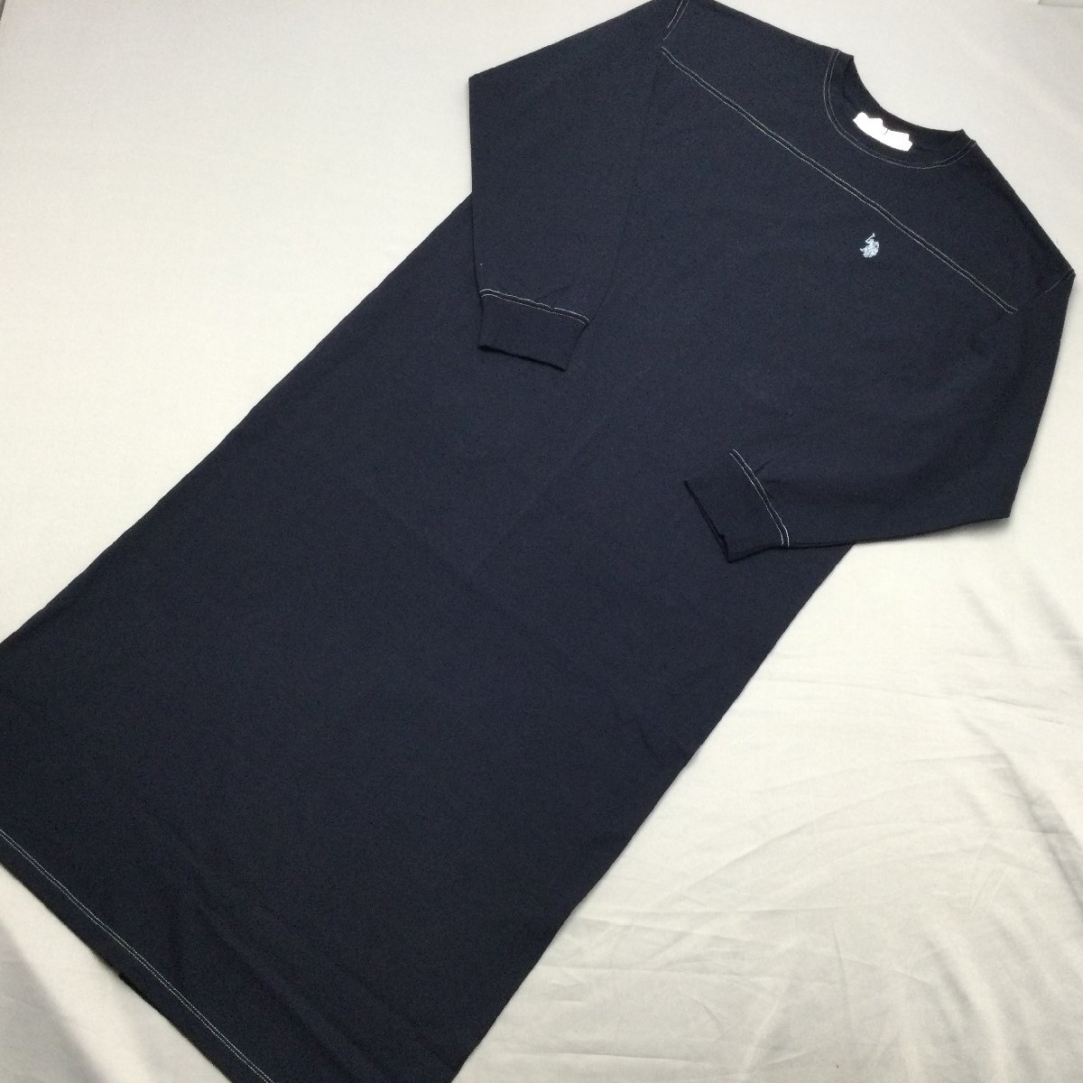 - 【送料無料】【新品】US.POLO.ASSN レディース長袖ワンピース(ロング丈 コットン100% ゆったりタイプ) L ネイビー★33210