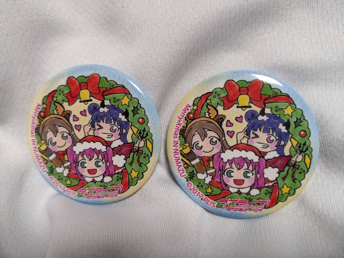 - 【送料無料】(期間限定品)沼津まちあるき缶バッジ 国木田花丸 津島善子 黒澤ルビィ (クリスマス)2個セット ラブライブサンシャイン