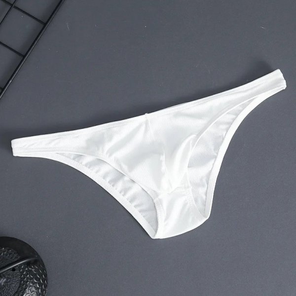 - メンズ フルシーム バルジ ヒップハング ローライズ リブ ストライプ ハーフバックビキニ ホワイト 日本Sサイズ