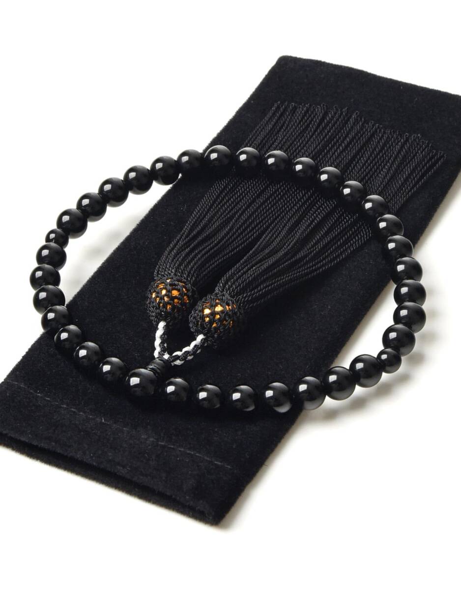 - 【特価商品】頭房 京都職人手作り 女性用 葬式 葬儀 数珠 数珠袋付き 天然素材 EsuonHappiness 8mm [オニキス