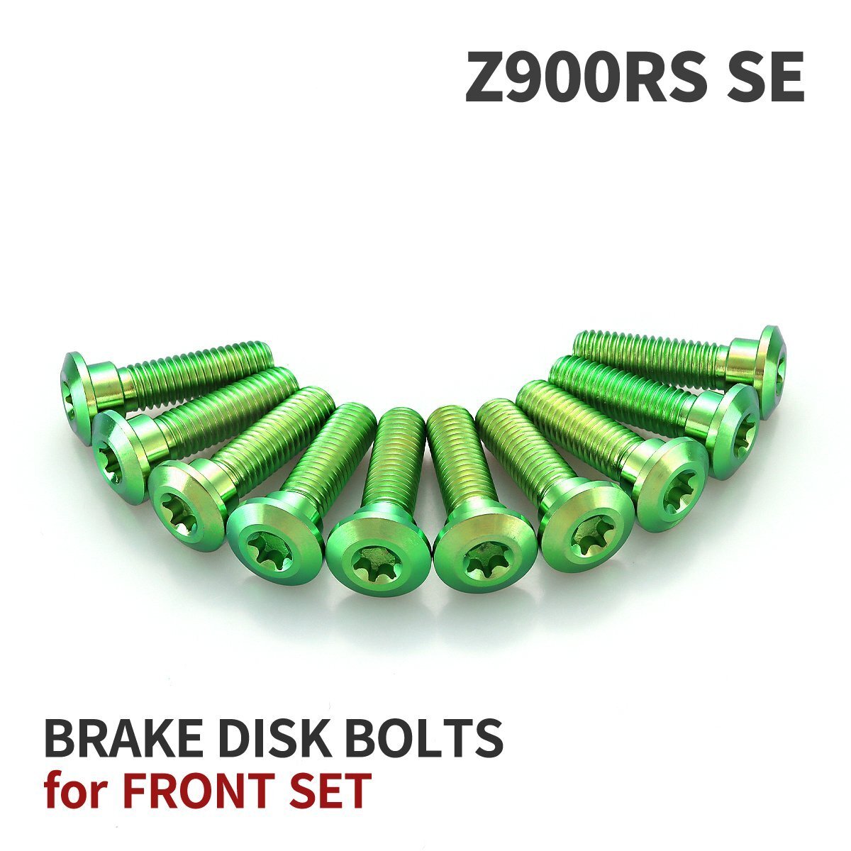 > Z900RS SE 64チタン ブレーキディスクローター ボルト フロント用 10本セット M8 P1.25 カワサキ車用 グリーン JA22002