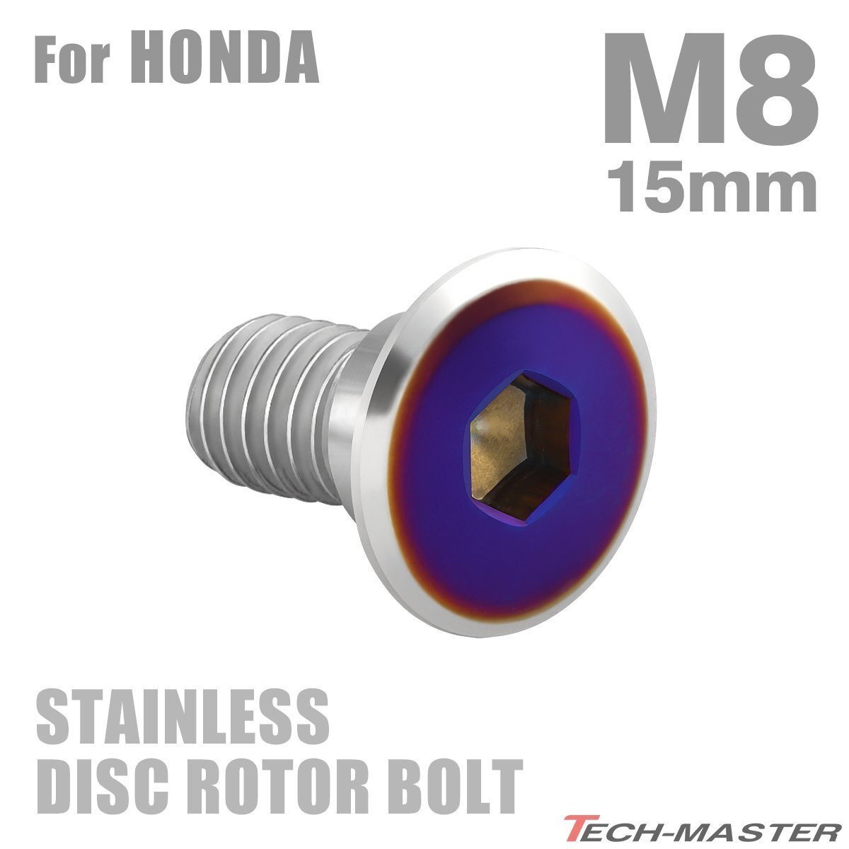 > M8×15mm P1.25 ブレーキディスク ローター ボルト フラットヘッド ステンレス ホンダ車用 HONDA シルバー×ブルー カスタム 1個 TD0317