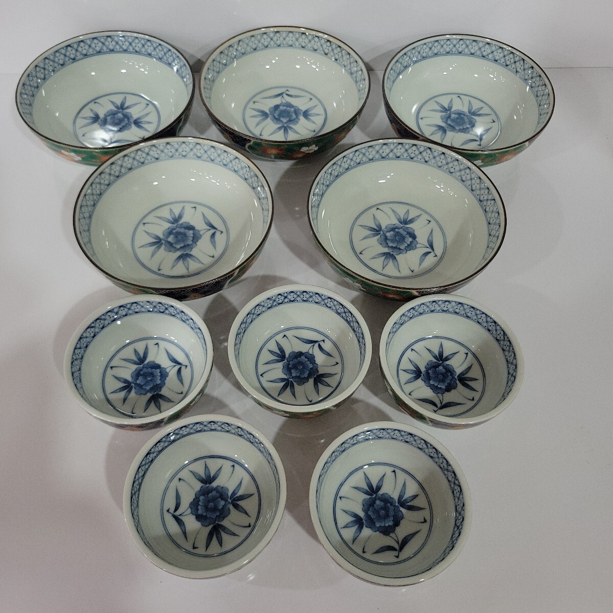 - №9012 中古食器 和食器 有田焼 弥生窯 小鉢口径約8㎝×5枚 中鉢口径約13㎝×5枚