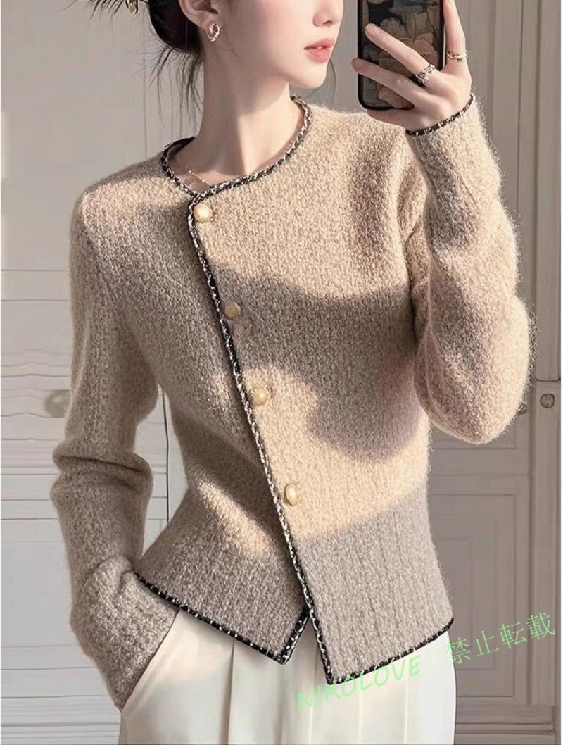 > ☆新品 高級感 気質 セーター通勤 ニット カーディガン 長袖 着やせ 大人 ニット セー タートップス オフィス オシャレ~カーキ MK595