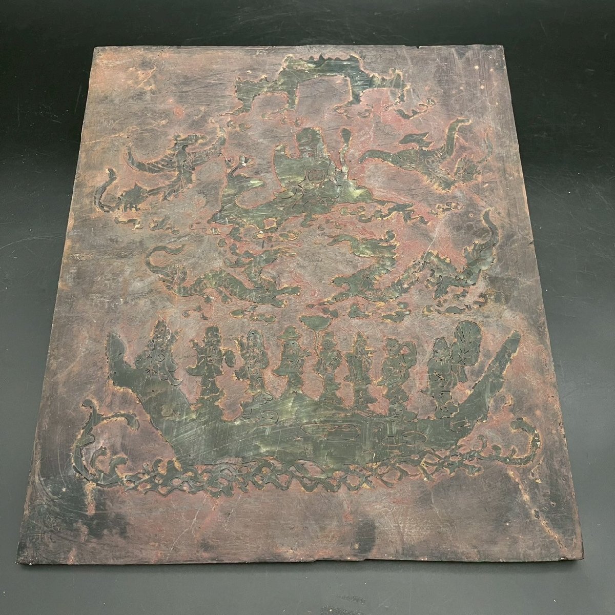 - SW0809-22‐3 銅板 銅器 銅製 板 刻印 船 人物 伝統 工芸 時代物 美術 彫刻 オブジェ 置物 高さ35㎝ 横幅33㎝ 奥行0.5㎝ 100サイズ