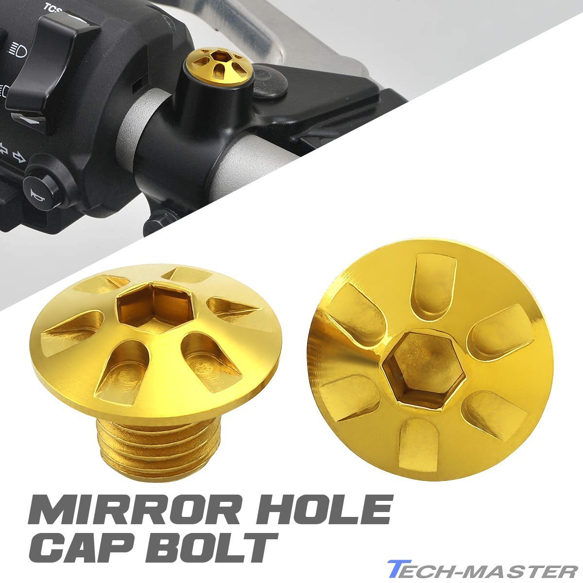 - ミラーホールキャップ 正ネジ 逆ネジ M10×10mm P1.25 2個セット ヤマハ車用 デザインヘッド ゴールド TH0187