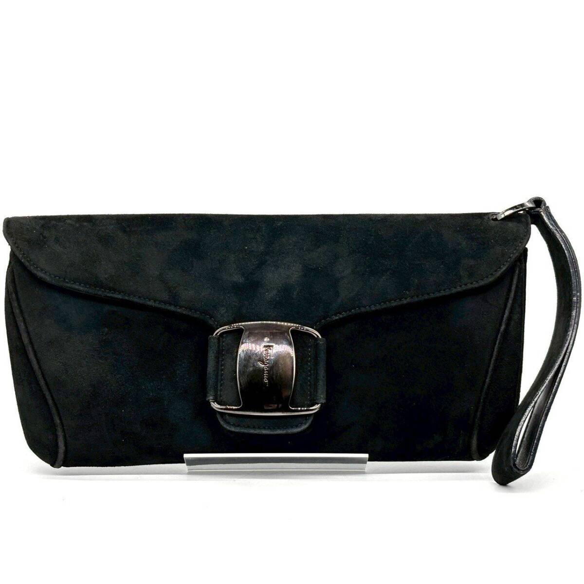 - Salvatore Ferragamo サルヴァトーレ フェラガモ クラッチバッグ ハンドバッグ スエード ヴァラ金具 ブラック