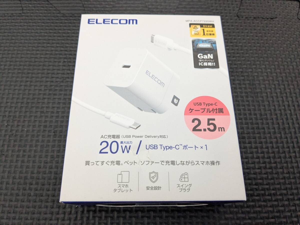 > ◎0709u0937 エレコム 充電器 Type-C ケーブル付属 2.5m USB PD対応 20W PSE認証品 GaN採用 折りたたみ式プラグ ホワイト MPA-ACCP7220WH