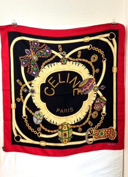 - 【丸-1904】MZ◆CELINE[セリーヌ]レディス スカーフ◆宝飾品の絵柄◆※ユーズド・中古◆KT