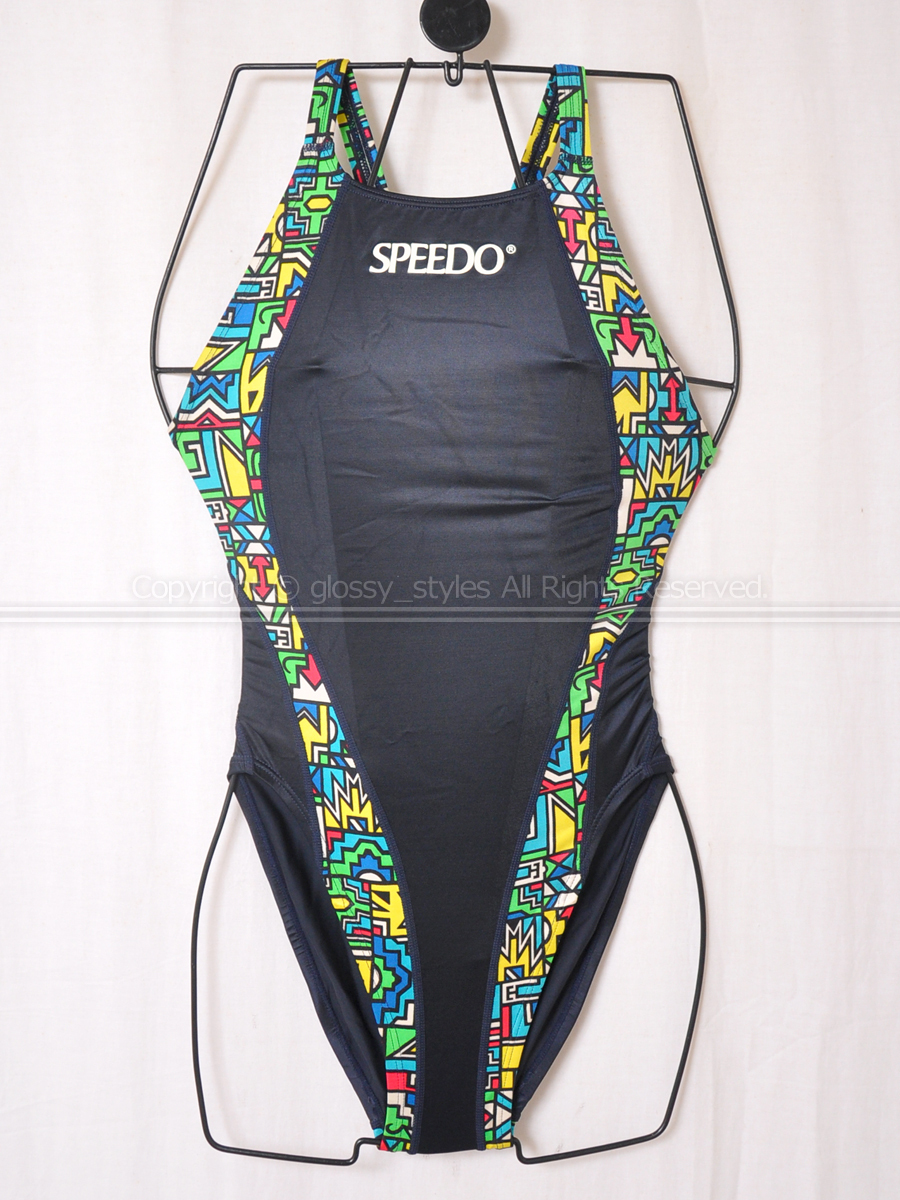 - K2008-04■新品 SPEEDO スピード AQUASPEC アクアスペック アクセライン競泳水着 83OG-82011 光沢 ブラック×柄 L
