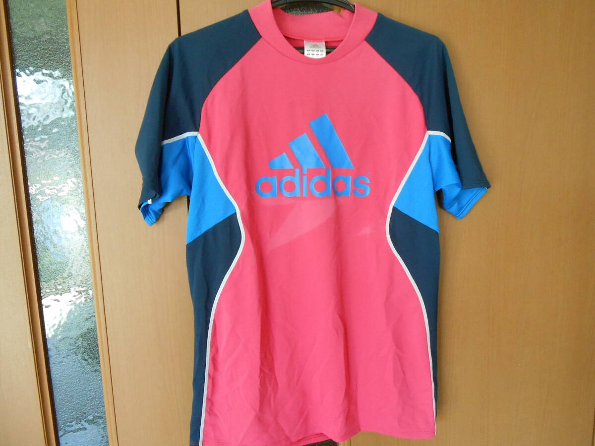 - アディダス adidas 半袖Tシャツ ピンクxブルーxネイビー Mサイズ