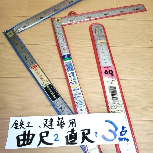 - 【アウトレット品】 シンワ YAMAYO 鉄工用 建築用 両面センチ目盛 曲尺 裏面サイズ表 直尺 3点セット 厚手広巾 50×25㎝ 600㎜ sp-031-465