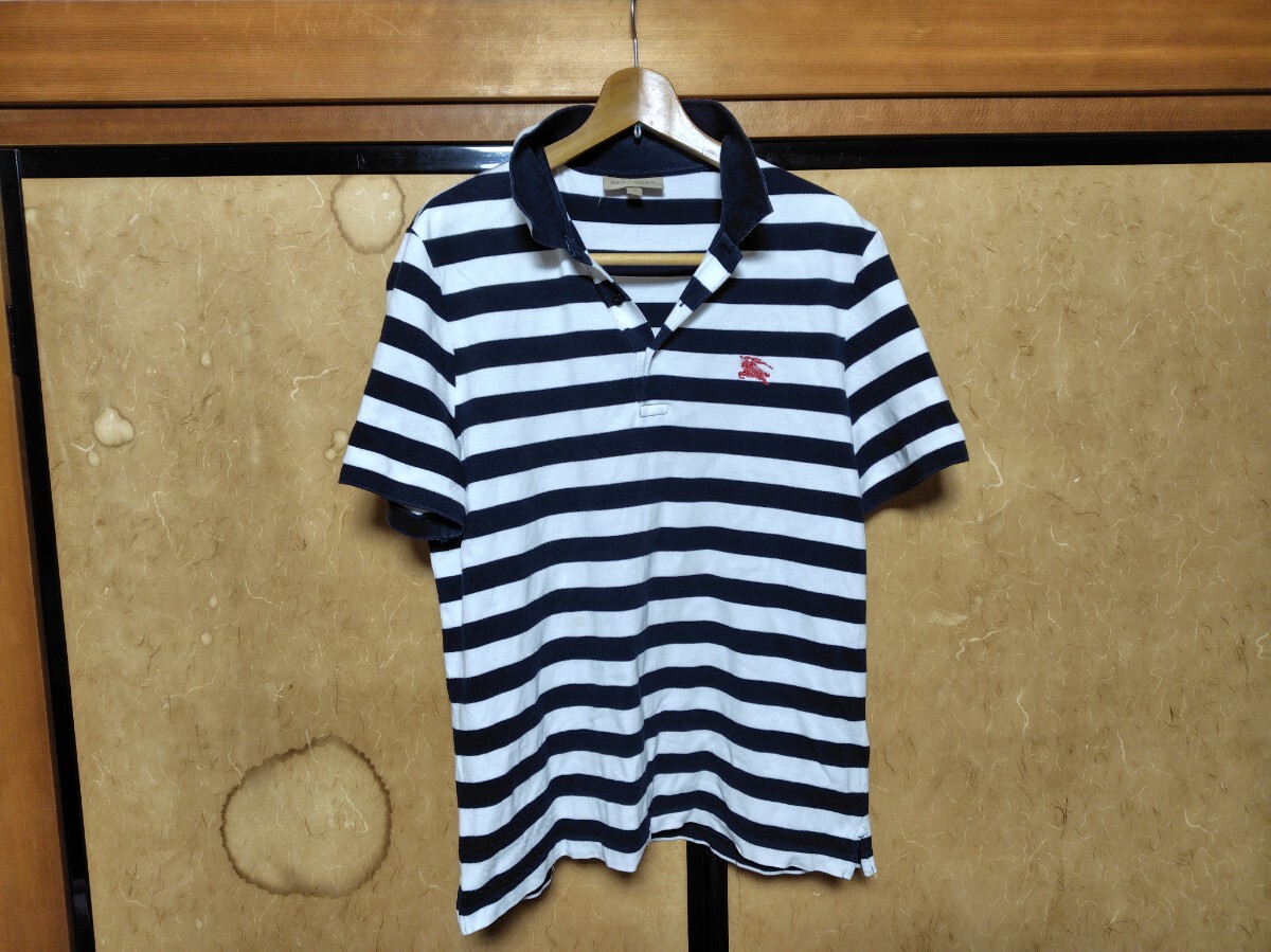 - バーバリーブラックレーベル BURBERRY BLACK LABEL XL LL 中古 半袖ポロシャツ ホースマーク LONDON ロンドン ボーダー ネイビーホワイト