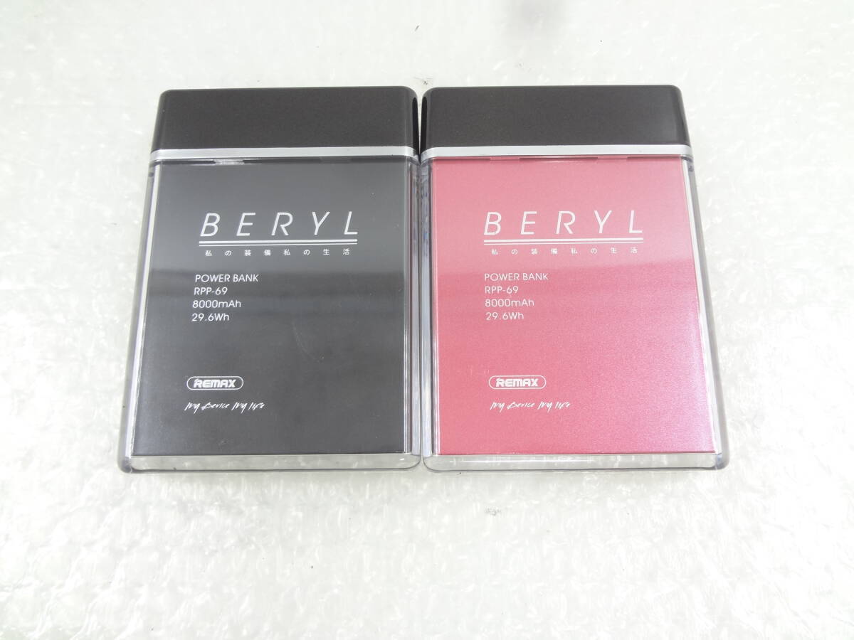 > 2個セット★BERYL コスメボトル型 モバイルバッテリー RPP-69 8000mAh LEDインジケーター内蔵 USBケーブル付き 中古動作品