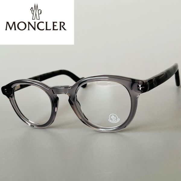 > モンクレール メガネ MONCLER メンズ レディース ボストン 眼鏡 グレー クリア 灰 ツートン 新品 スケルトン 透明 おしゃれ 丸メガネ