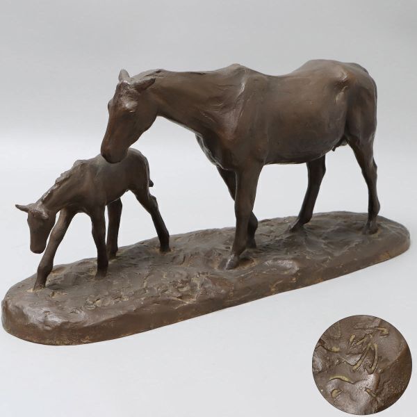西洋彫刻美術 在銘 サイン有 ブロンズ 親子馬 置物 の出品です。