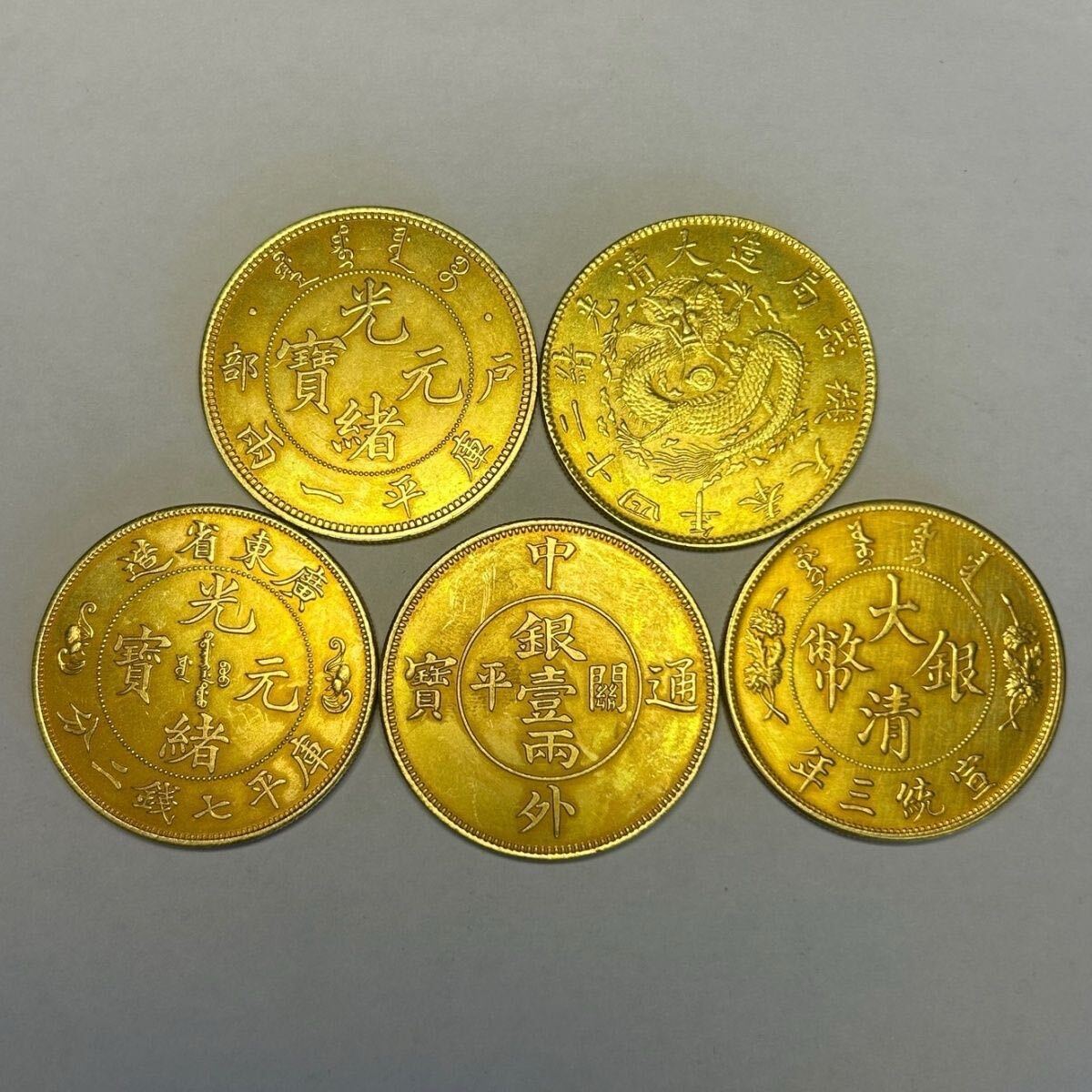 > お得! 極美品 中国 清代古錢 光緒元宝 5枚セット 金貨 骨董品 コレクション 収蔵品 大型金貨 外国古銭 古銭 中国 コイン 収蔵ケース付き