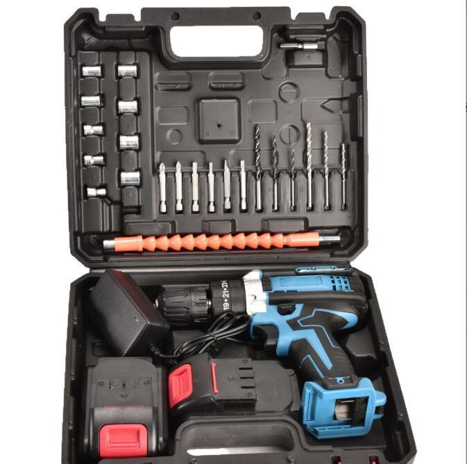 - 新作【新品&バッテリー2個付き】電動ドライバー 充電式 スピード調節機能 正逆転切替 LEDライト付 ビット25本付き 収納ケース付き