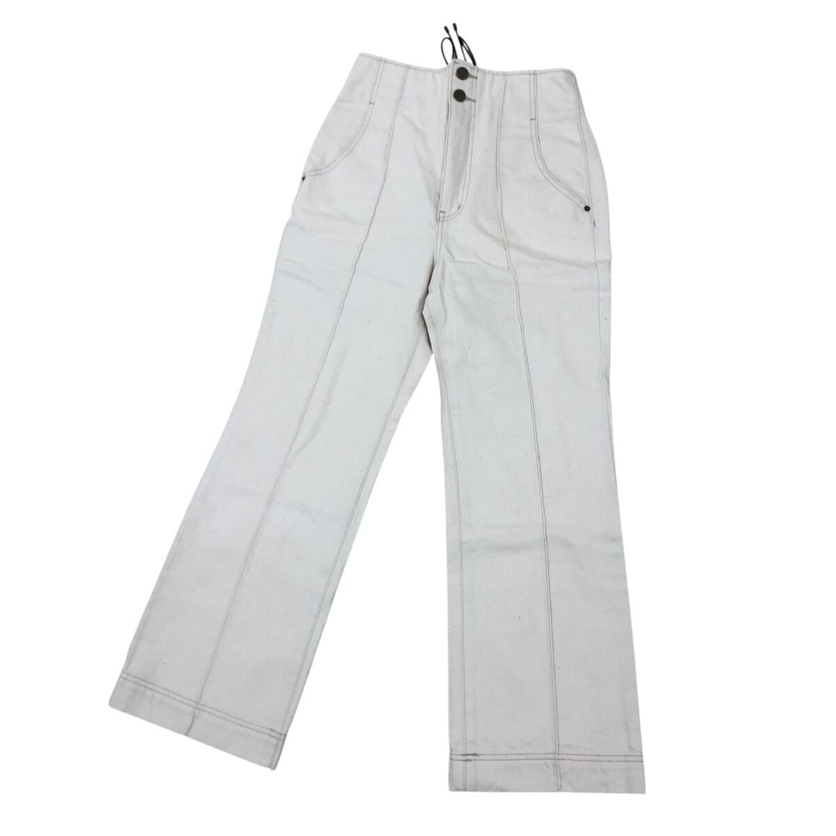 - 9NK002-35 Lily Brown リリーブラウン ハイウエスト 編み上げ デニム フレア タック パンツ ボトムス アイボリー レディース 女性用 0