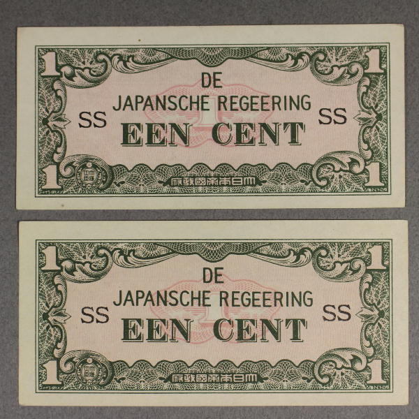 - 大東亜戦争軍票《 は号 1セント 2枚 》蘭印方面 未使用 t0171
