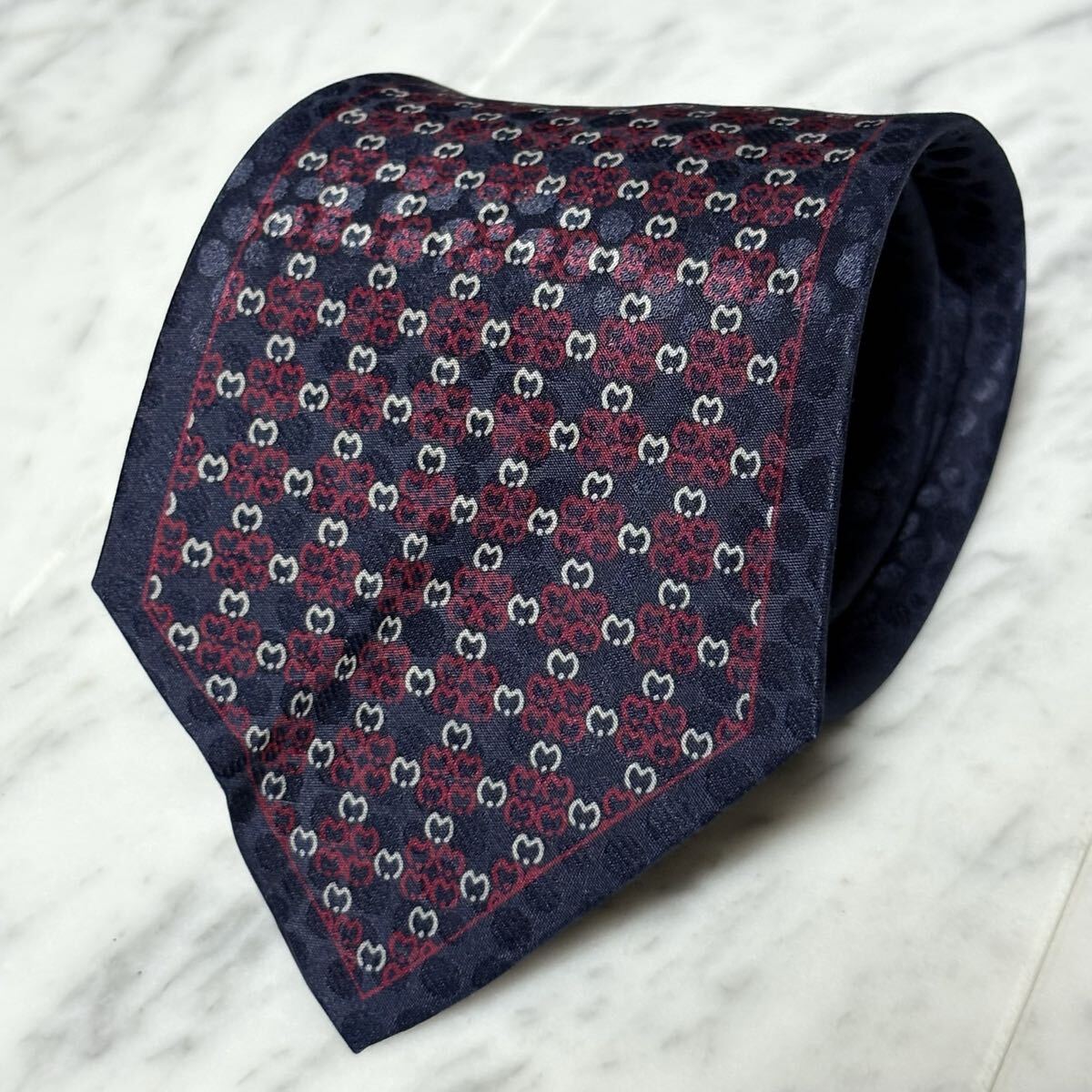 - 【美品】 999円~ ミラショーン ネクタイ ネイビー レッド ロゴ柄 (B14)