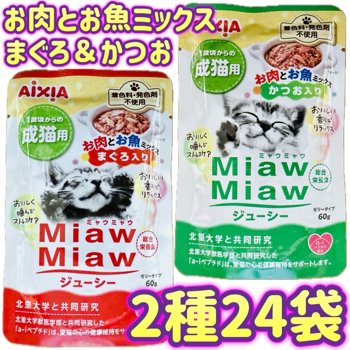 - ミャウミャウ ジューシー キャットフード お肉とお魚ミックス MiawMiaw 総合栄養食 パウチ アイシア 【2種24袋】