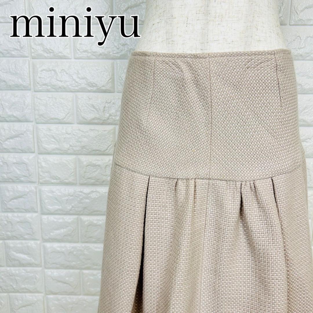 - 【AA1149】 ミニュー miniyu Mサイズ フレアスカート ひざ丈 ピンクベージュ ギャザー オフィスカジュアル レディース 古着