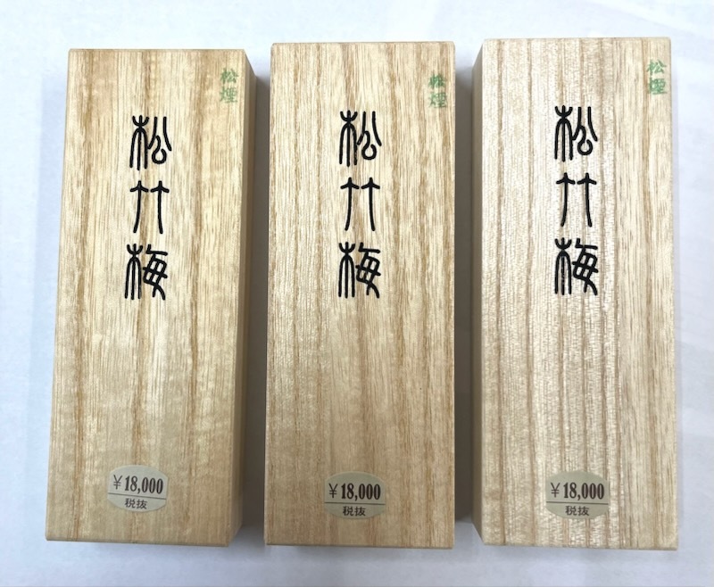 - 固型墨 ◎貴重 松煙墨 「松竹梅」6丁型3本セット 書道用墨 固形墨 書道 墨 墨まとめて 美術工芸品 固形墨