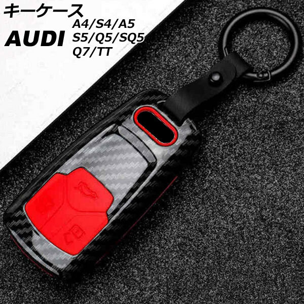 - キーケース アウディ A4 8WCVK/8WCYRF/8WCVN/8WDEM/8WDDWF/8WDEZ/8WDETF/8WDTPF ブラックカーボン×レッド 3ボタン ABS+シリコン製