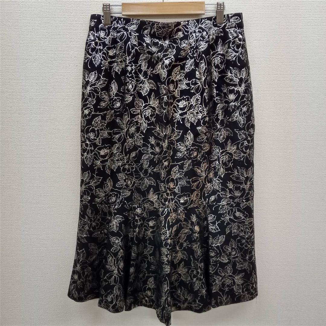 - 【美品】carherine ann(13)ロングフレースカート*花柄総柄*ウール