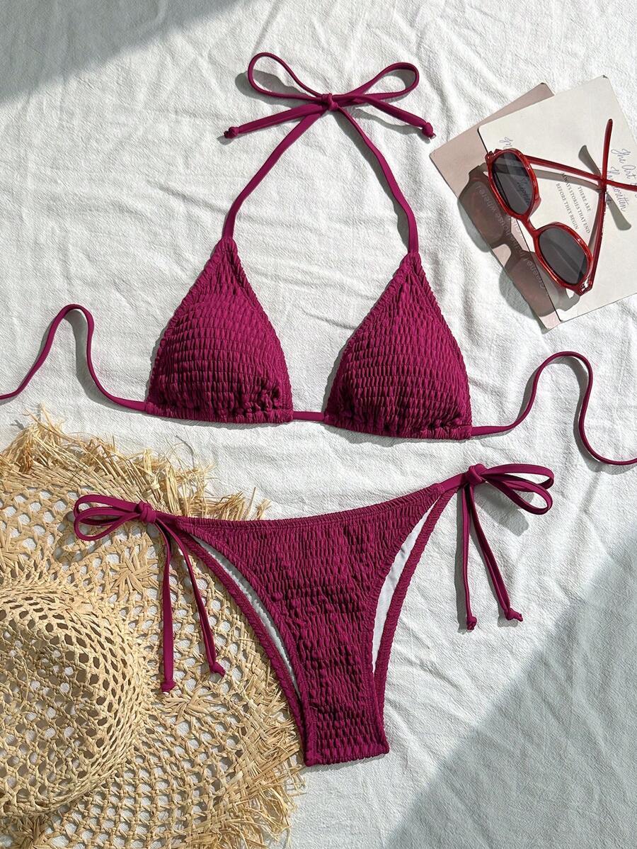 - レディース 水着 ビキニセット 女性用無地ホルターネック 水着セット ビキニ リボン付き セクシー夏用ビーチ