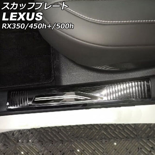 - スカッフプレート 内側 レクサス RX350/RX450h+/RX500h TALA10/TALA15/AALH16/TALH17 ブラック ステンレス製 ヘアライン加工