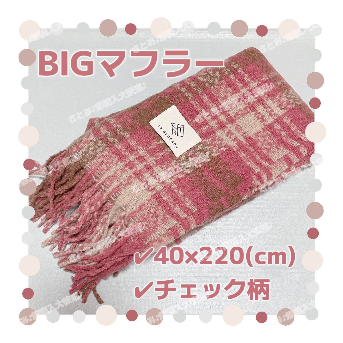 - チェック BIG マフラー 大判 羽織り ひざ掛け 秋冬 モヘアタッチ 大きめ 厚手 防寒 オシャレ 可愛い ピンク