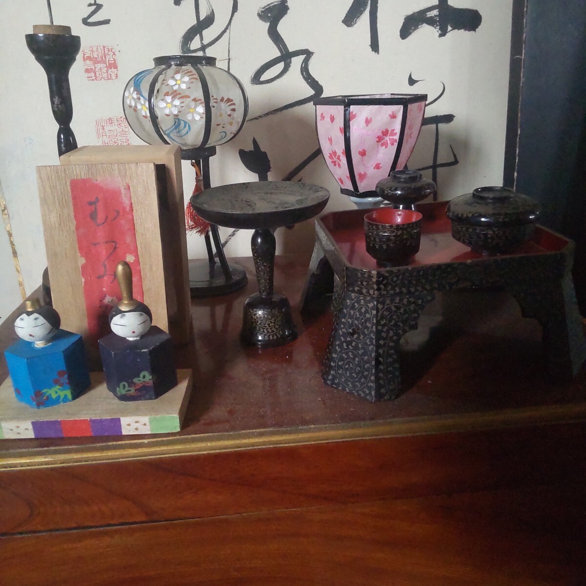 - 鳥取発木彫り雛お月見セットおままごとセット盆彼岸蝋燭立て3ケ