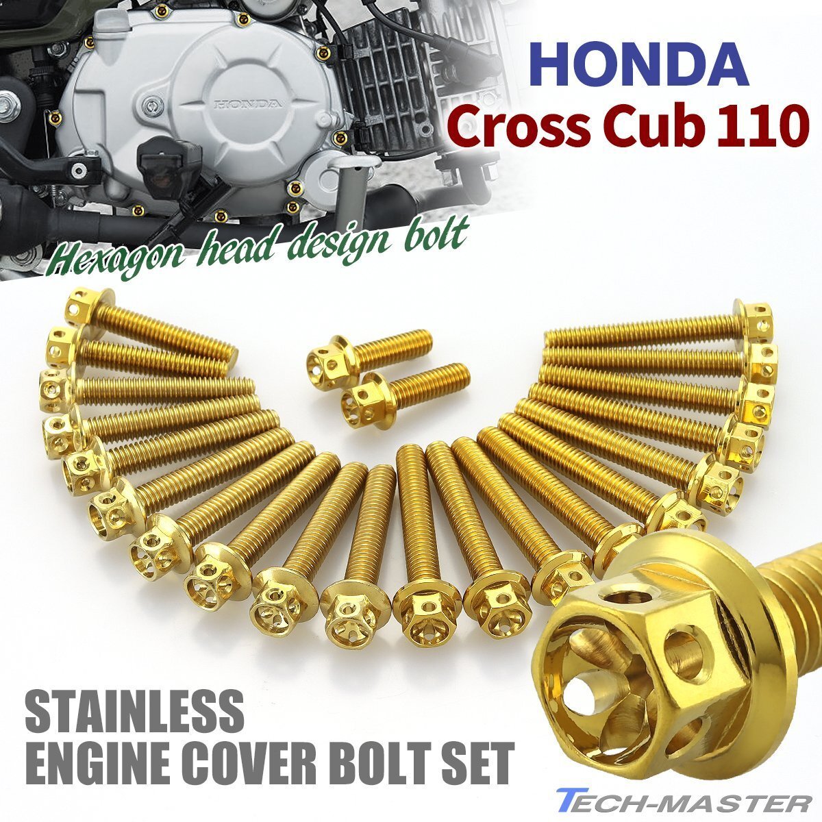 - クロスカブ110 エンジンカバー クランクケース ボルト 22本セット ステンレス製 フラワーヘッド ホンダ車用 ゴールドカラー TB6330