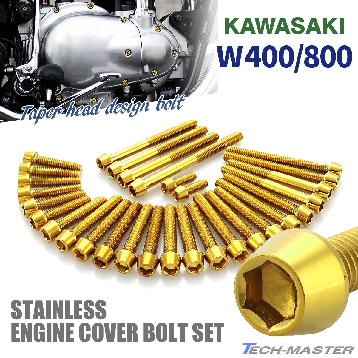 - W400 W800 エンジンカバーボルト 30本セット ステンレス製 テーパーヘッド カワサキ車用 ゴールドカラー TB8484