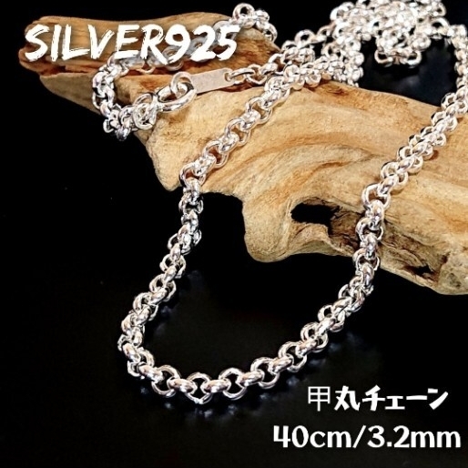 > 3173 SILVER925 甲丸アズキネックレスチェーン40cm/3.2mm シルバー925 13-40 ロールチェーン ボールチェーン 丸 艶質感 リングチェーン