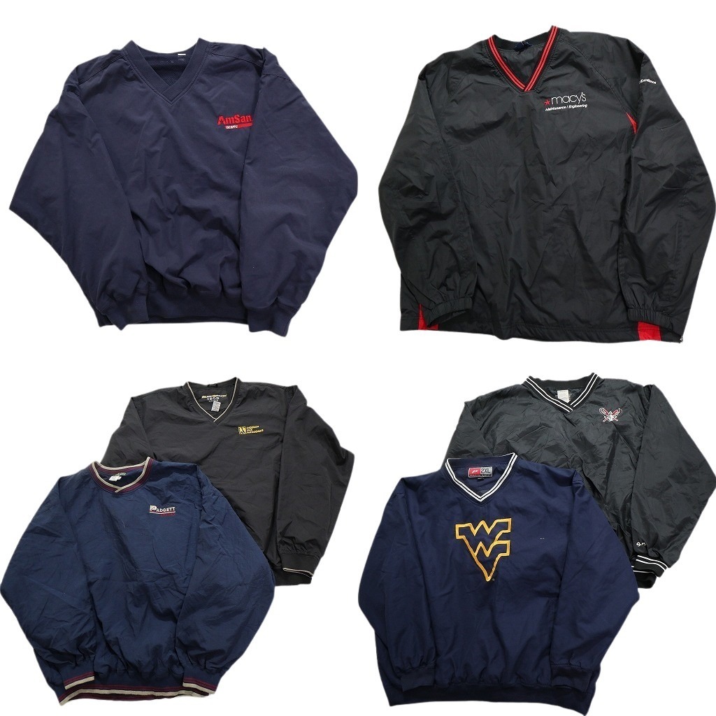 > 古着卸 まとめ売り ワンポイント プルオーバー ジャケット 6枚セット (メンズ 2XL ) Vネック 単色 英字文字 中古 古着 NB1237 1円スタート