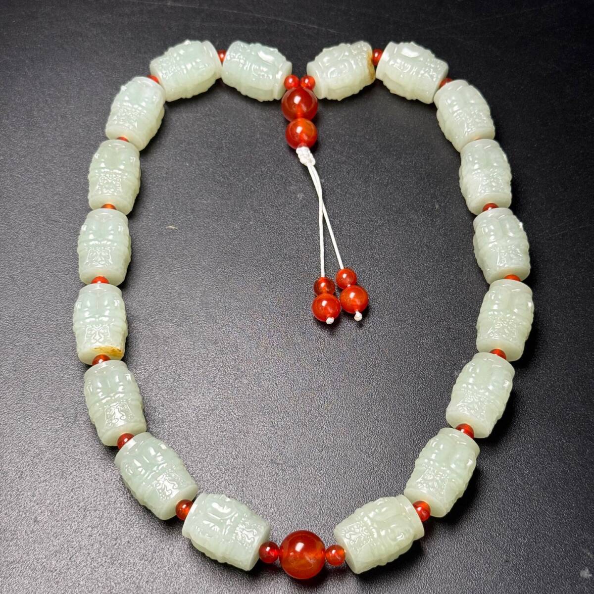 - 蔵友旧蔵出 和田玉製 細密彫 觀音頭 十八子手持 玉質細膩 希少珍品 貴重品 置物 古賞物 中国古玩 中国古美術品