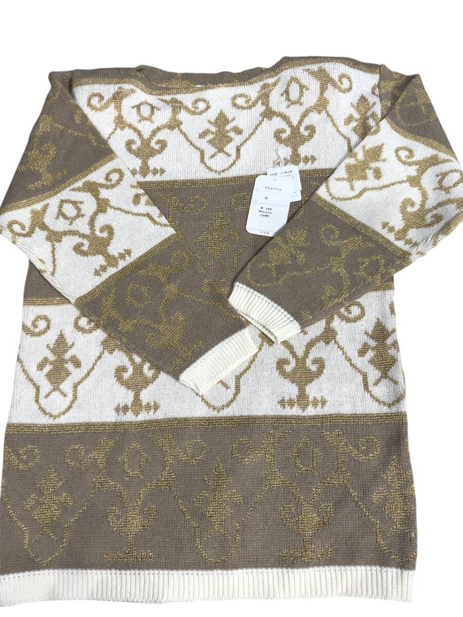 > ●H7-9-16 レディースファッション ラメ ボーダー柄 ニット セーター チュニック レディース M ブラウン ベージュ 保管品