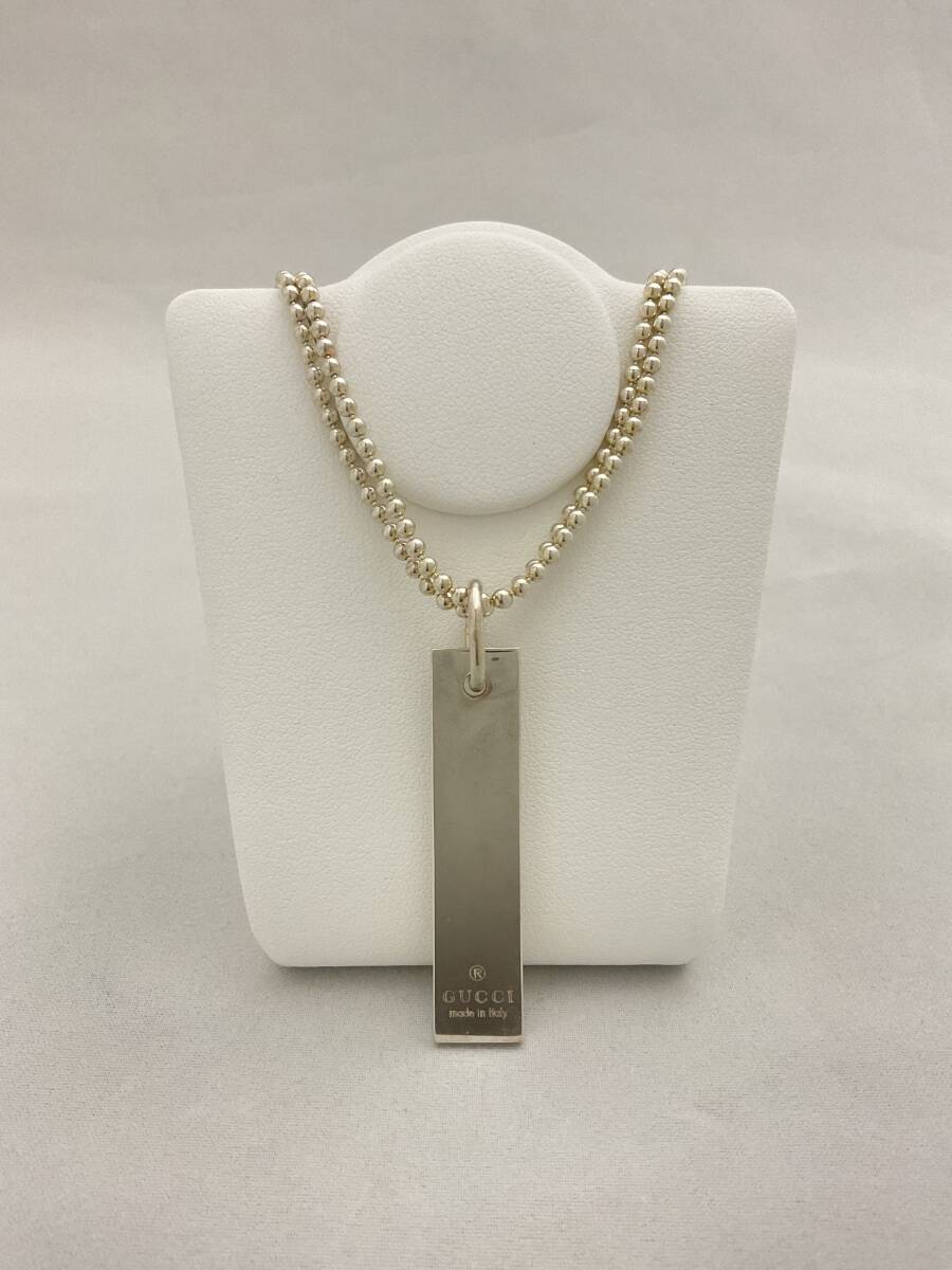 > GUCCI グッチ ダブルボールチェーン プレート ネックレス 難あり シルバー アクセサリー 925【B338589】